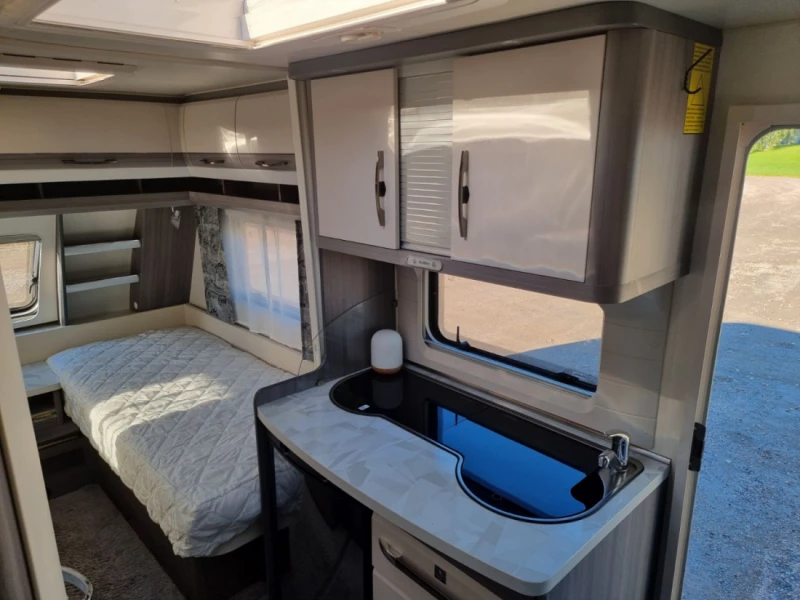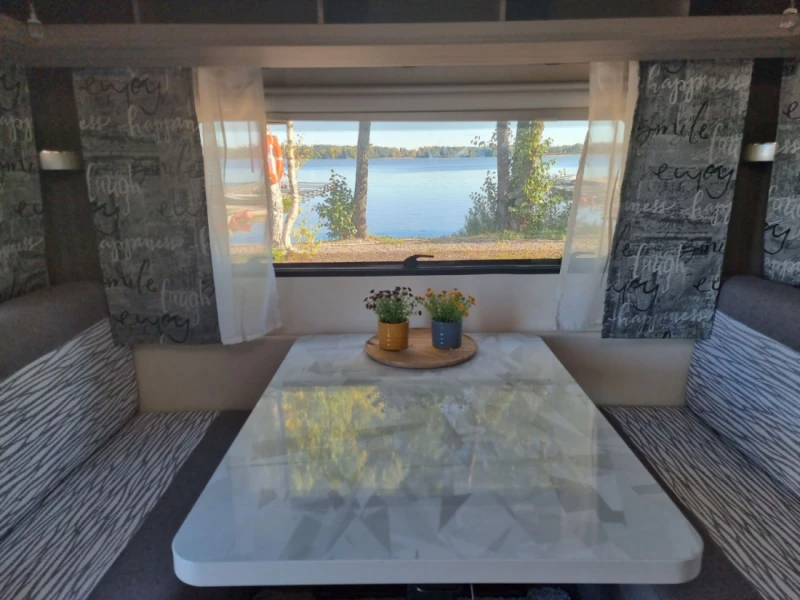 View original textA handy-sized caravan, especially suitable for couples. There are spacious sleeping places for three adults (two ready-made beds and a bed formed by the dining group in the back). A small child can sleep on an additional bed between the adults, meaning the caravan can accommodate two adults and two children. The caravan is in neat condition. With LED lights, you can create exactly the atmosphere you want in the caravan. The caravan has a mover installed, which allows you to move the caravan without a tow truck. The mover works with a remote control, you can walk next to the caravan and control the caravan wirelessly. The motors are powered by the caravan's battery. This makes it much easier to find the best spot, for example at a campsite. The caravan is also easy to tow. In difficult places - even a dead end - the caravan can be detached and turned 180 degrees with the mover. The caravan is reattached and the journey continues. TV (battery-operated), refrigerator and versatile cooking hobs. Instruction on how to use the cart is included in the price. The owner is also available for help by phone at any time. The cart can be delivered to the customer. The price is agreed separately.